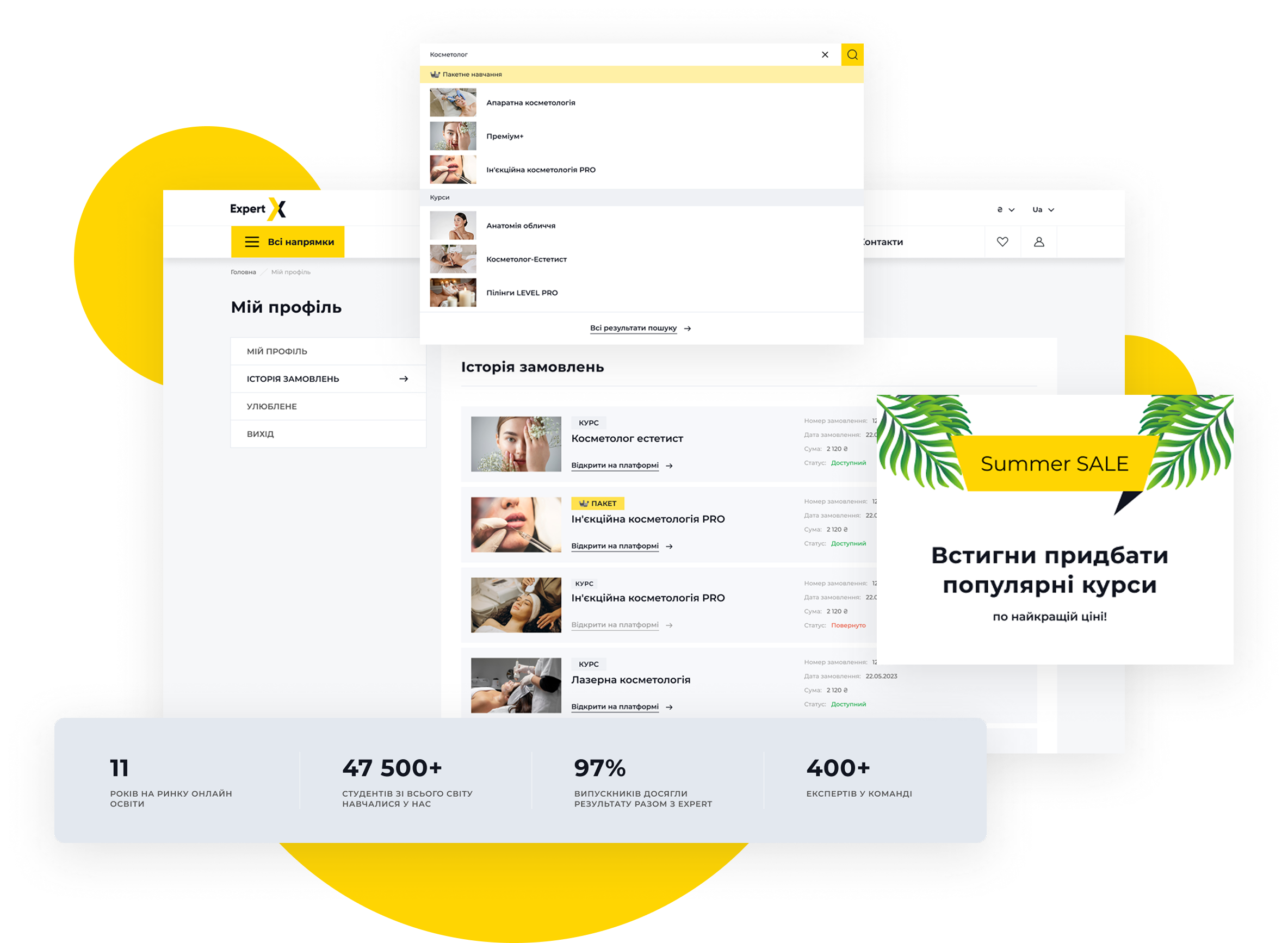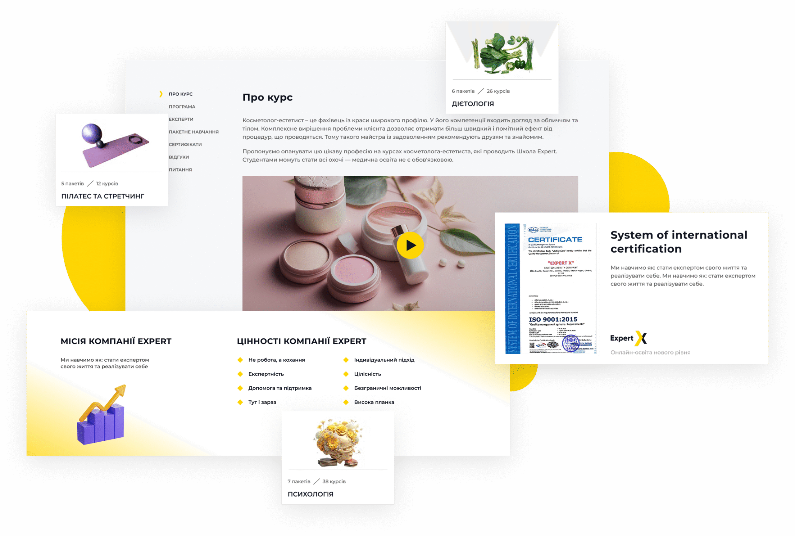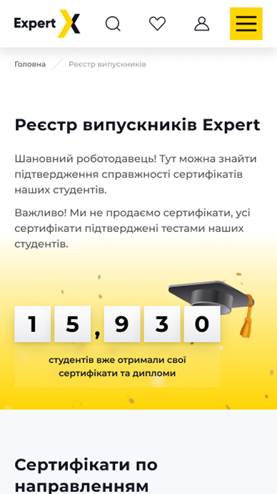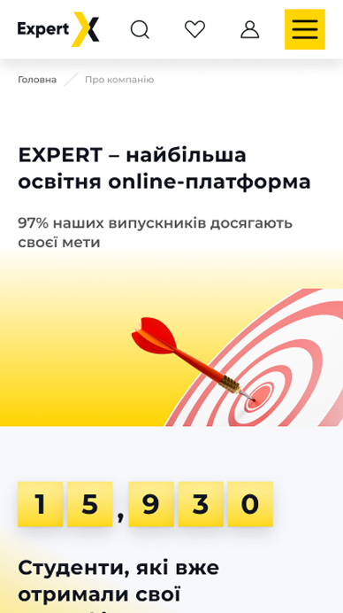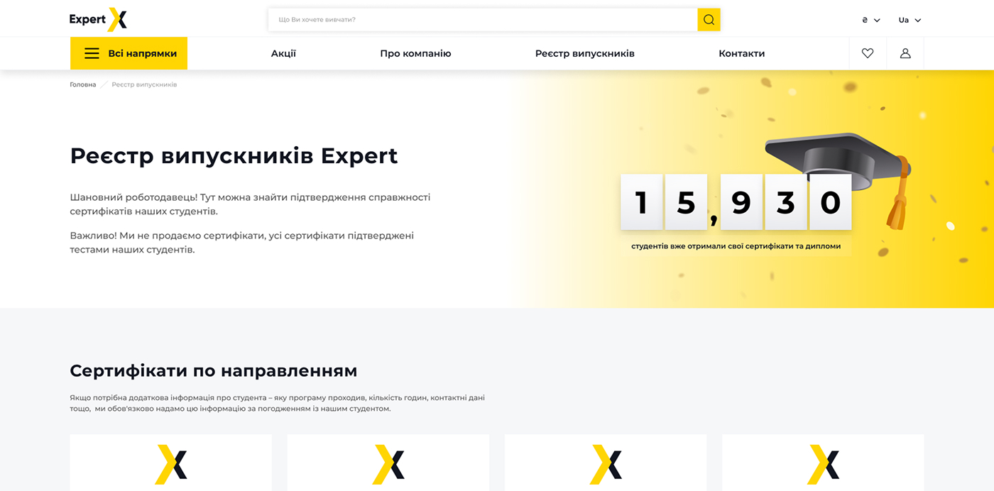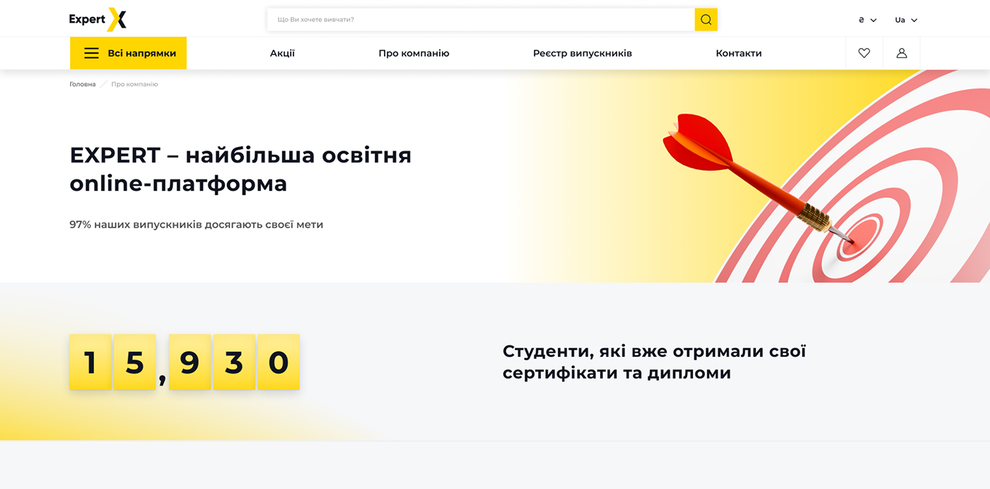 Корпоративный сайт международной образовательной платформы Expert, которая предлагает широкий выбор обучающих программ для новичков и профессионалов в разных сферах.