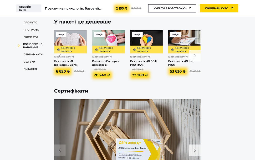 Блок «Итого дешевле»: предложения на покупку нескольких курсов по сниженной цене.