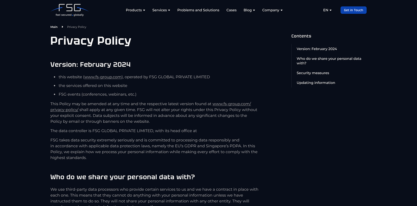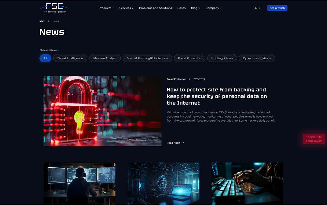 FS Group – международная компания, специализирующаяся на кибербезопасности с фокусом на Infosecurity и Threat Intelligence. Благодаря широкому спектру уникальных продуктов и услуг, FS Group обеспечивает защиту компаний по всему миру, помогая им противостоять современным киберугрозам. Сайт является ключевым инструментом для представления экспертизы компании, демонстрации продуктов и привлечения новых клиентов.