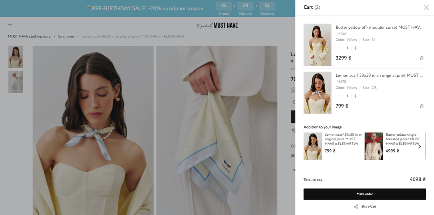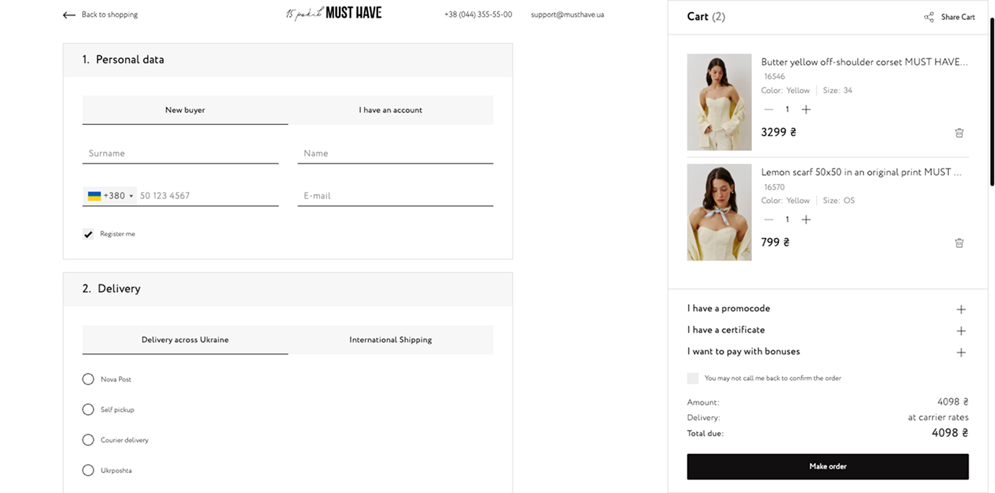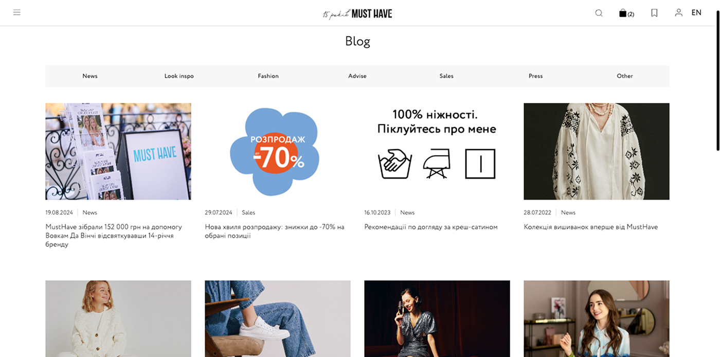 MustHave – сайт компании, специализирующейся на пошиве и продаже одежды собственного производства под брендом Must Have. Это первый украинский масс-маркет женской одежды, основанный в 2010 году Анной Бец и Анастасией Дзюбой. С годами компания росла, совершенствовала качество производства и расширяла команду, отвечая потребностям и ожиданиям клиентов. Сегодня MustHave имеет собственное производство площадью 1500 кв. м, 16 магазинов в Украине, 180 сотрудников, интернет-магазин и представительства в 10 странах мира. Сайт служит платформой для презентации ассортимента бренда и информирования клиентов о новинках и услугах.