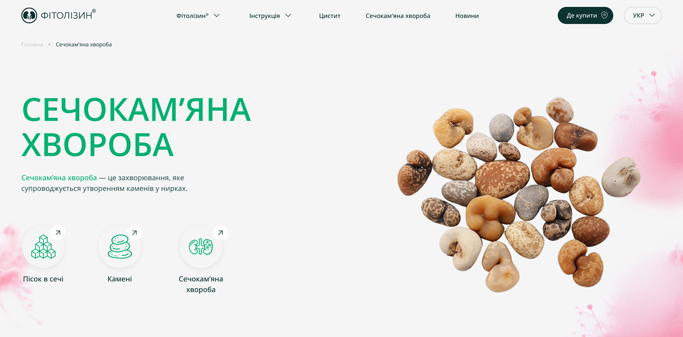 Сайт продукта лекарственного средства Фитолизин, созданный для фармацевтической компании "Польфарм". Платформа призвана презентовать лекарственное средство, информировать пользователей о его составе, показаниях к применению и преимуществах.