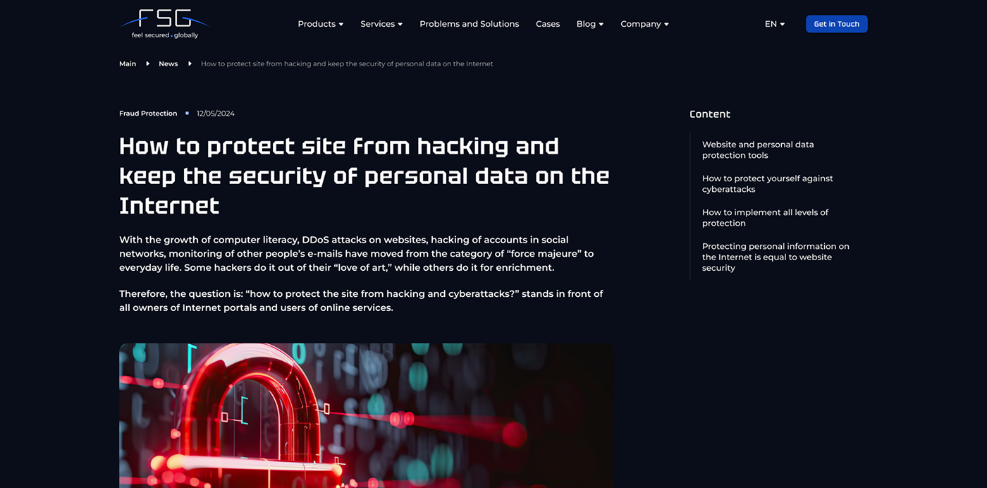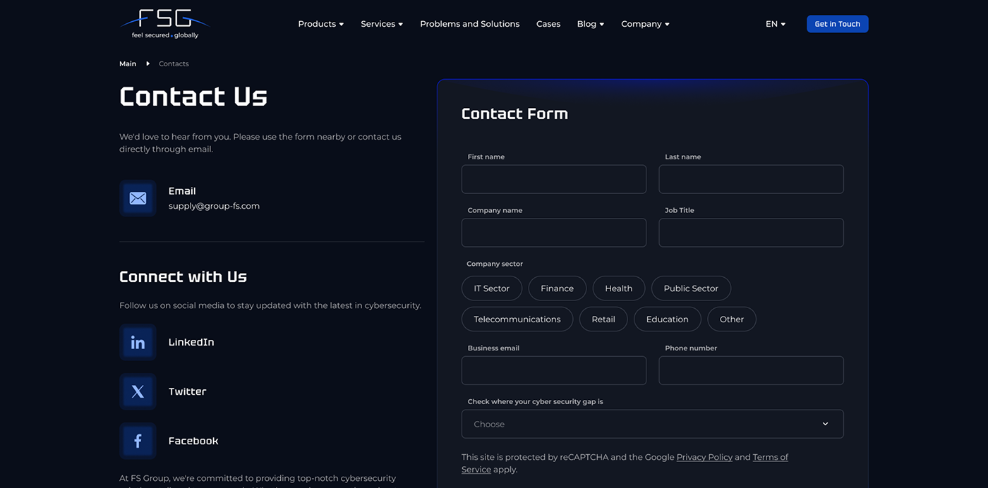 FS Group — міжнародна компанія, що спеціалізується на кібербезпеці з фокусом на Infosecurity та Threat Intelligence. Завдяки широкому спектру унікальних продуктів і послуг, FS Group забезпечує захист компаній по всьому світу, допомагаючи їм протистояти сучасним кіберзагрозам. Сайт є ключовим інструментом для презентації експертизи компанії, демонстрації продуктів і залучення нових клієнтів.