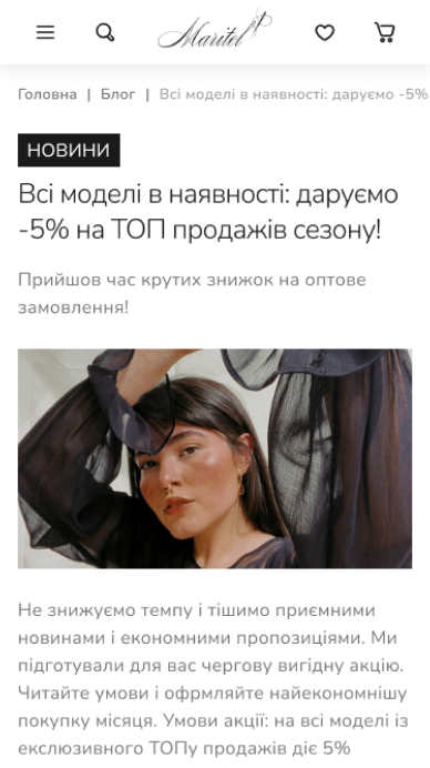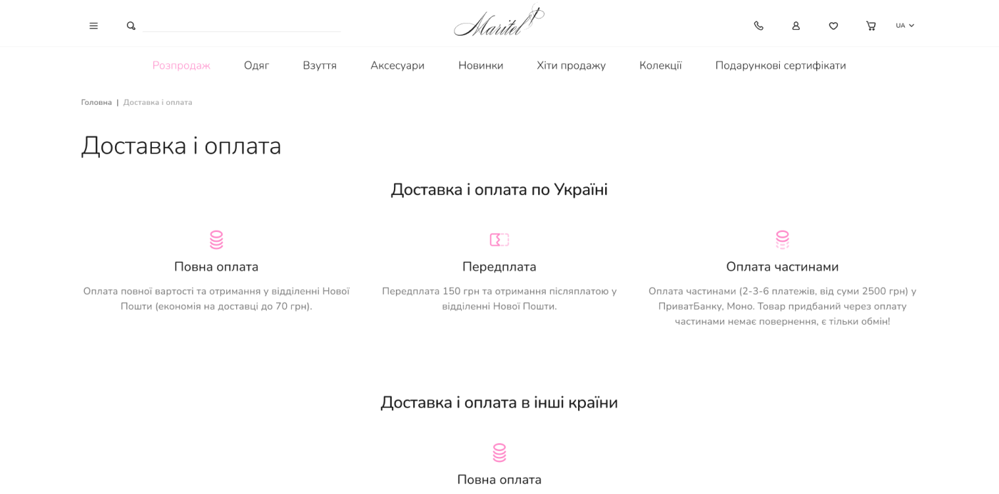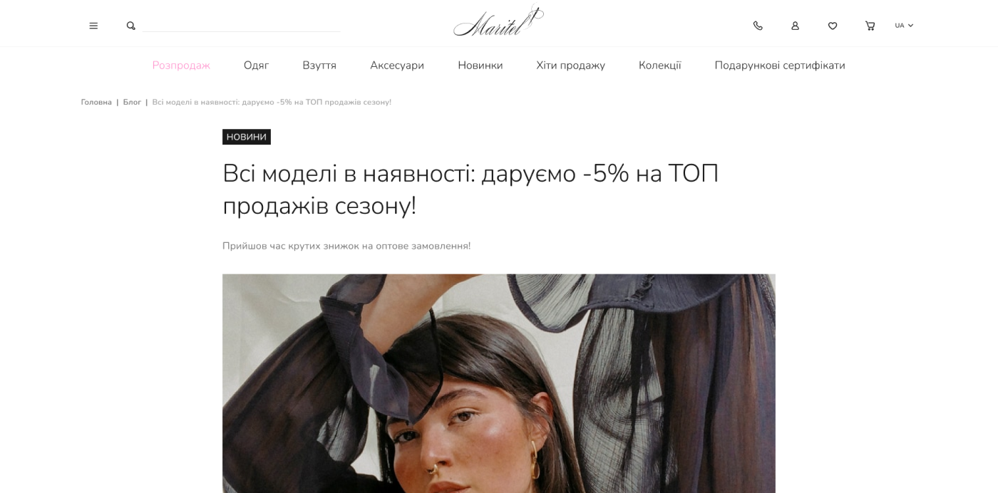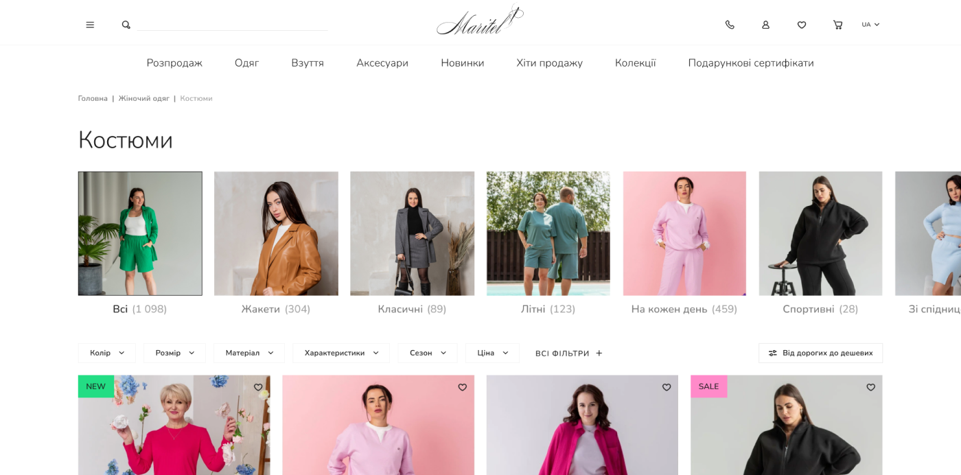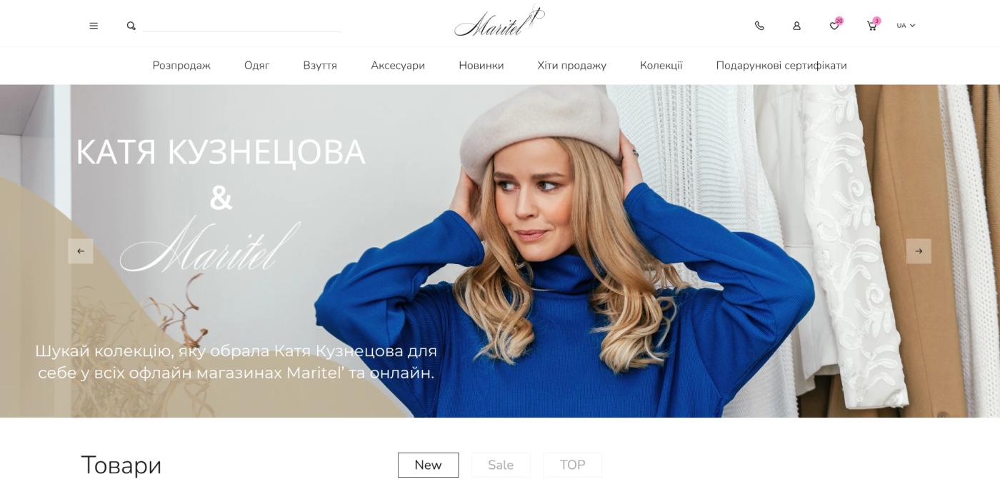 Maritel – український бренд, який спеціалізується на створенні стильного та зручного одягу для сучасних жінок. З 2003 року Maritel поєднує модні тенденції з комфортом, задовольняючи потреби кожної покупниці. Сайт maritel.com.ua представляє широкий асортимент одягу, який можна легко переглядати та купувати через зручний інтерфейс. Бренд акцентує увагу на індивідуальності, пропонуючи клієнтам не лише покупки, а й можливість ознайомитися з філософією та стилем марки.
