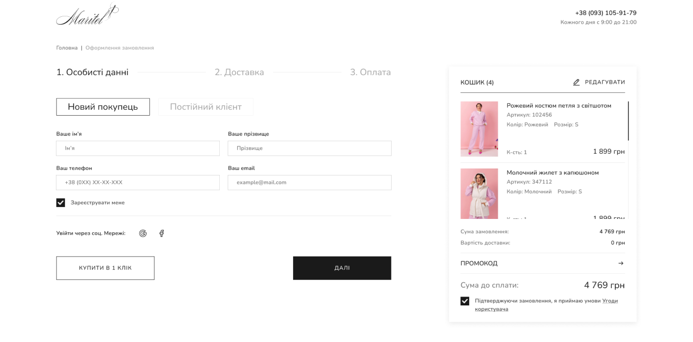 Основною метою проєкту є оновлення інтернет-магазину українського бренду Maritel. Старий сайт не відповідає сучасним вимогам дизайну та зручності використання. Оновлений ресурс має бути зручним, ефективним і адаптивним. Він дозволить покупцям швидко знаходити та купувати одяг, забезпечуючи приємний досвід користування. Поставлено завдання акцентувати увагу на якості та комфорті продукції, забезпечити простоту вибору та придбання товарів, а також створити приємний користувацький досвід.