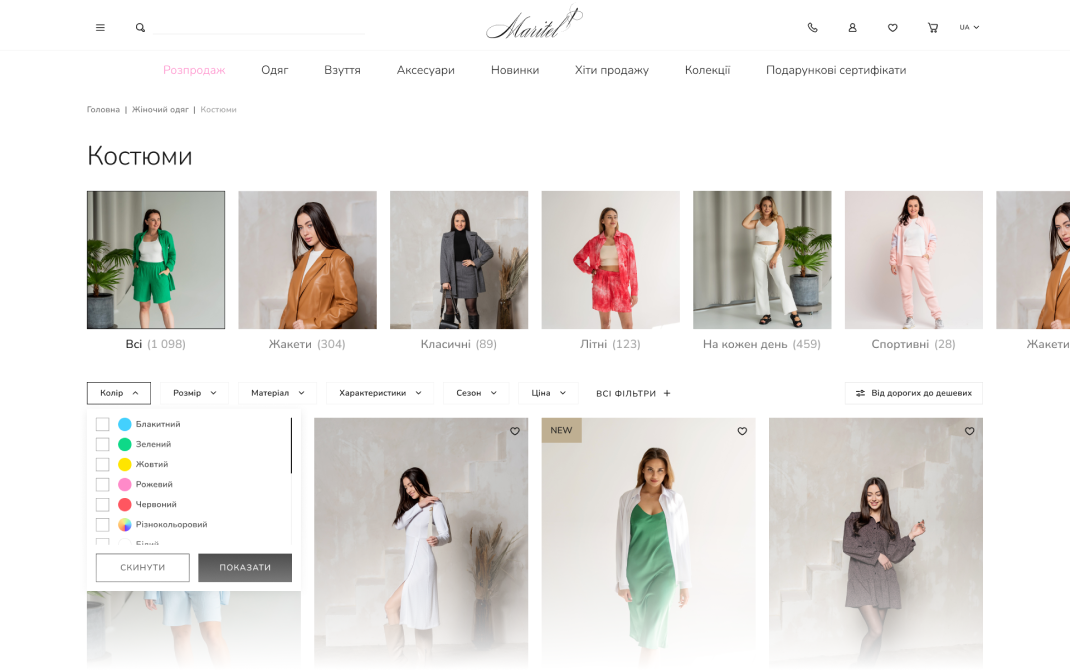 Впроваджено зручну фільтрацію товарів для швидшого знаходження потрібних позицій.