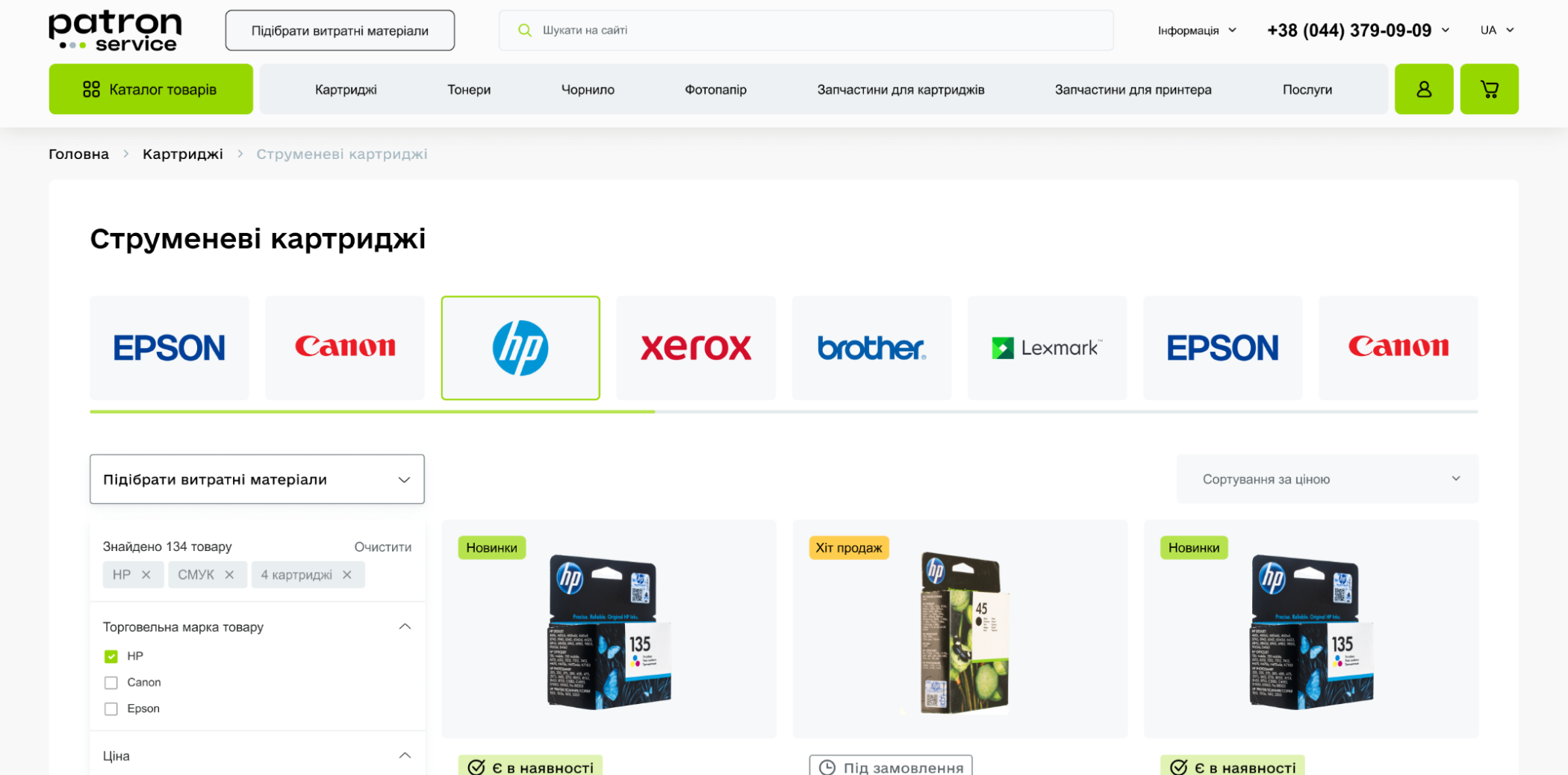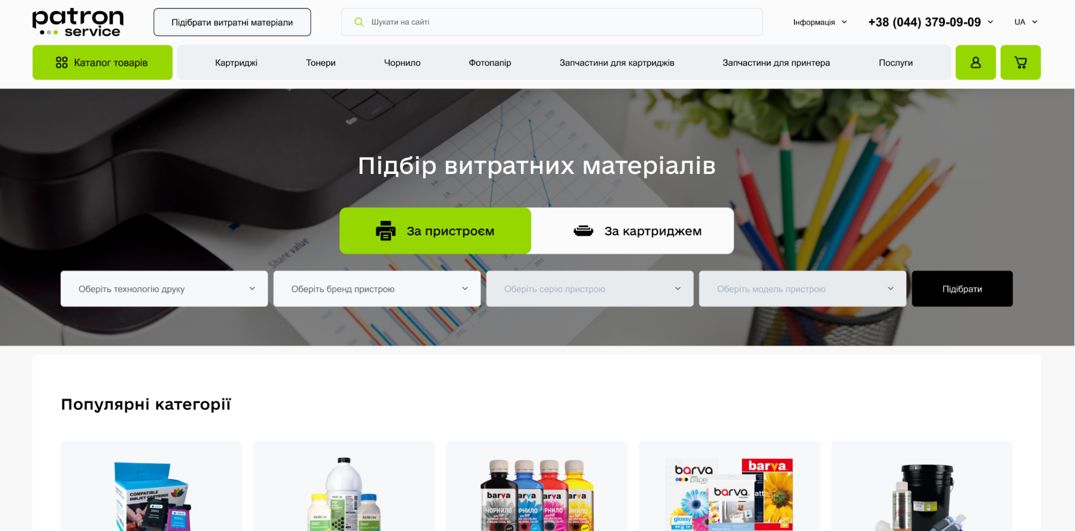 Додано акцент на головному екрані для ЦА, яка не розбирається в техніці — «Підбір витратних матеріалів».