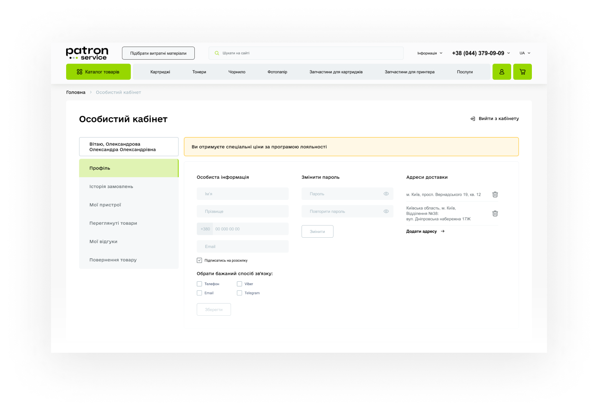 Окрім цього, функціонал особистого кабінету був розширений, надаючи користувачам додаткові зручності та можливості керування своїм акаунтом та замовленнями.