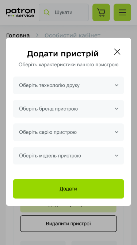 В особистому кабінеті з'явилась можливість додавати та видаляти друкуючий пристрій.