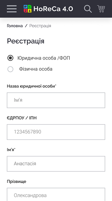 HoReCa 4.0 — B2B сервіс для продажу продукції закладам харчування, ресторанам, барам.