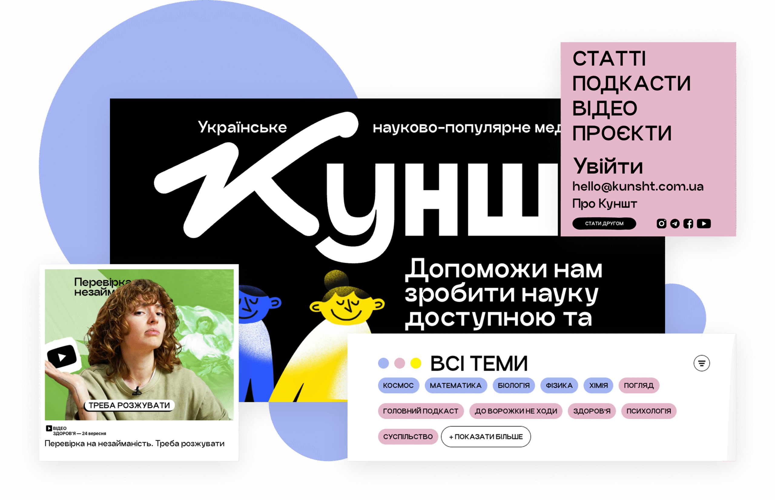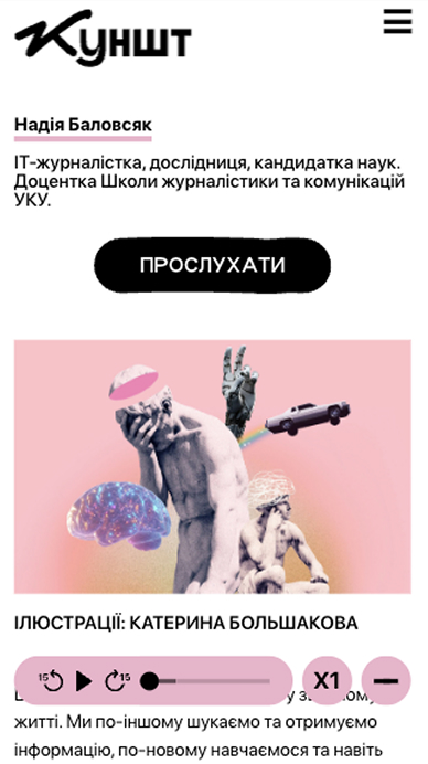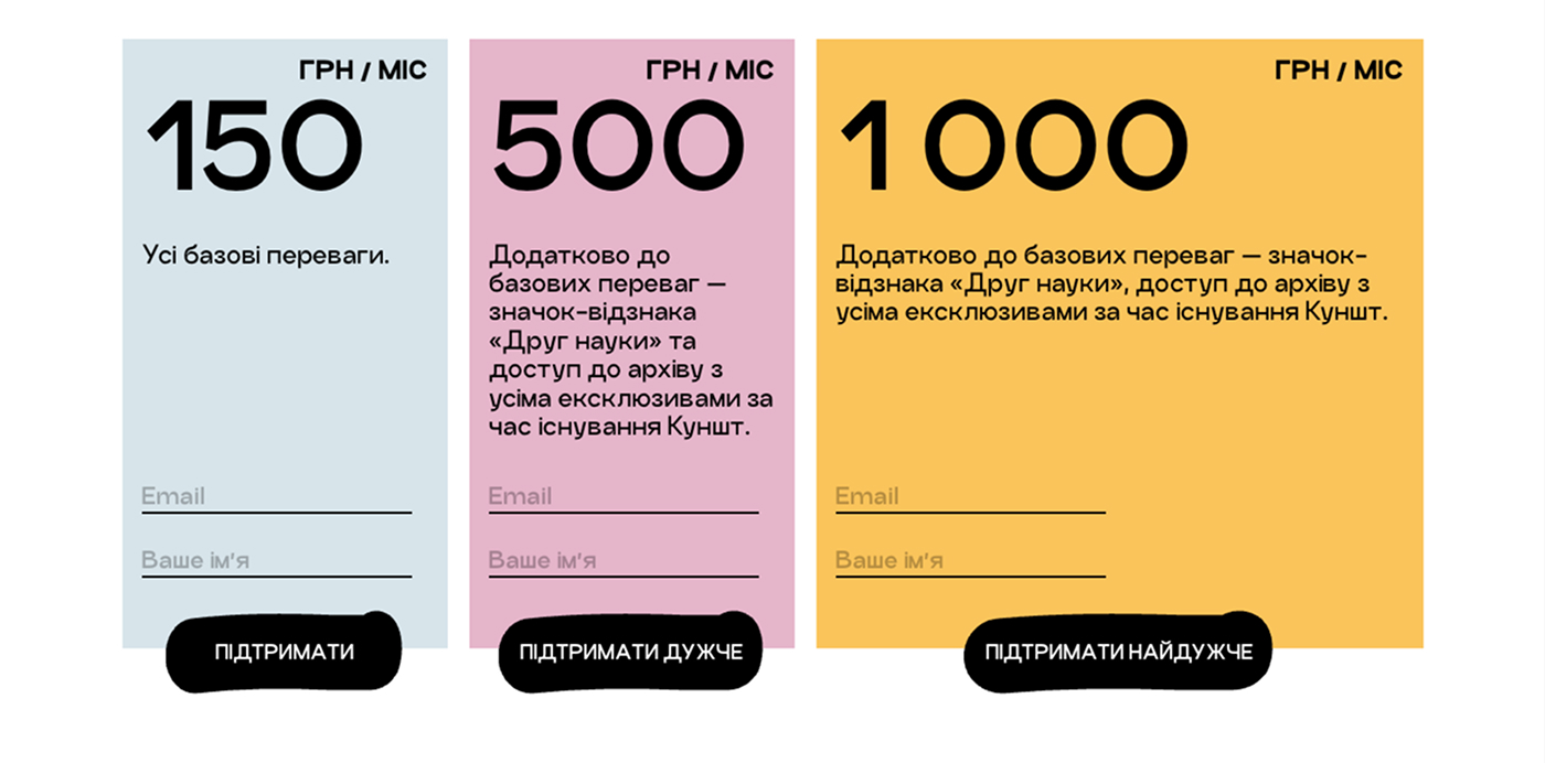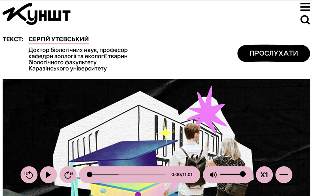 Медіапортал для українського науково-популярного медіа “Куншт”, створений для популяризації науки через статті, подкасти, відео та події. Платформа оснащена особистим кабінетом користувача, пропонує різні варіанти підписки та надає доступ до ексклюзивних заходів для підписників.